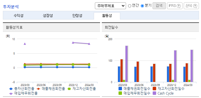-2024년 3월 전년동기 대비 연결기준 매출액은 1.1% 증가, 영업이익은 108.8% 증가, 당기순이익은 286.8% 증가. 전년 대비 판매량이 상승함과 동시에 글로벌 공급망 정상화로 물류비가 감소하고, 재료비 또한 하락하여 수익성이 큰 폭으로 개선됨. 대한타이어공업협회 자료를 기준(PCR)으로 동사 시장점유율은 국내 30~40%로 파악하고 있음. 한국타이어, 금호타이어, 넥센타이어 3개사의 시장점유율 약 90% 내외 점유함.