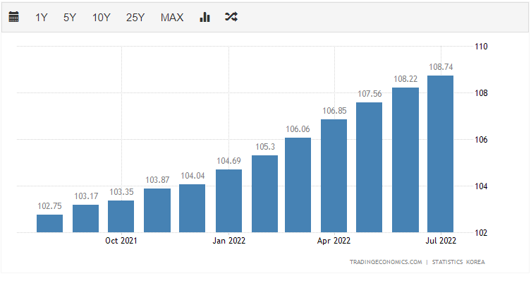 한국 소비자 물가 지수, 물가 상승률(22.08.01)