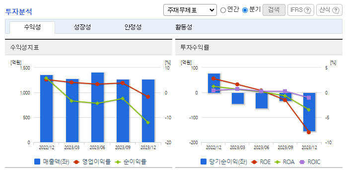 -2023년 12월 전년동기 대비 연결기준 매출액은 3.9% 감소, 영업이익은 55.9% 감소, 당기순이익 적자전환. 2023년 한독은 알렉시온과의 사업종료로 인한 매출 감소. 별도 재무제표 기준 매출은 2022년 대비 3.5% 감소. 영업이익은 매출감소 및 R&D 비용 증가로 전년 대비 55.9% 감소. 별도 기준 유동비율은 94.3%이며, 현금성 자산은 전년 대비 186억 원 감소한 102억 원.