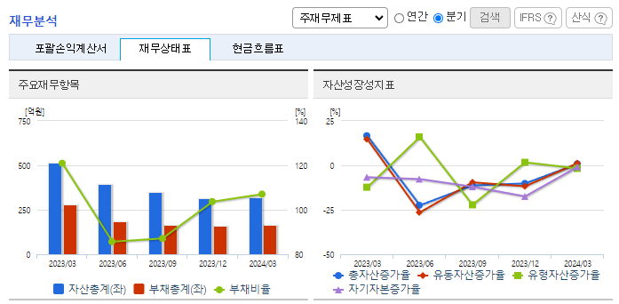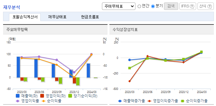 -2024년 3월 전년동기 대비 연결기준 매출액은 32.2% 감소, 영업손실은 91.6% 감소, 당기순손실은 95.6% 감소. 신작 게임인 '그라나도 에스파다 M' 출시 효과와 비용 효율화에 따른 손익 구조 개선 등이 반영되며 영업손실이 대폭 감소하였음. '그라나도 에스파다 M'은 출시 후 안정적인 매출 흐름을 보이고 있으며, 기존 서비스 계약이 확정된 태국과 인도네시아 외 대만, 일본, 중국 등 다수 국가로의 출시도 협의 중임.