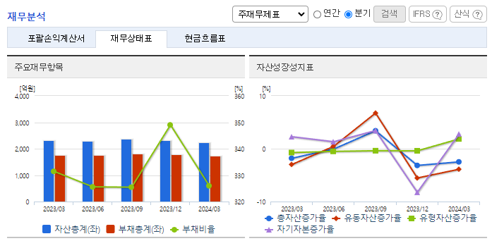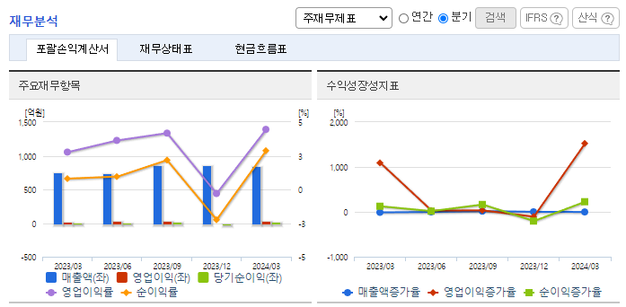 -2024년 1분기 별도기준 매출액은 전년동기 대비 12.5% 증가, 영업이익은 81% 증가, 당기순이익은 304.3% 증가. 해외에서 한국 식품의 선호도가 높아짐에 따라 크래미 등의 수출이 급증하는 등 상품 수출이 51.1% 증가함에 따라 매출 증가로 이어짐. 시장 개척을 위한 제품 차별화, 현지화 전략 등으로 국내시장뿐만 아니라 글로벌시장에서 당사의 브랜드를 알리고, 시장을 확대하는데 집중할 계획임.