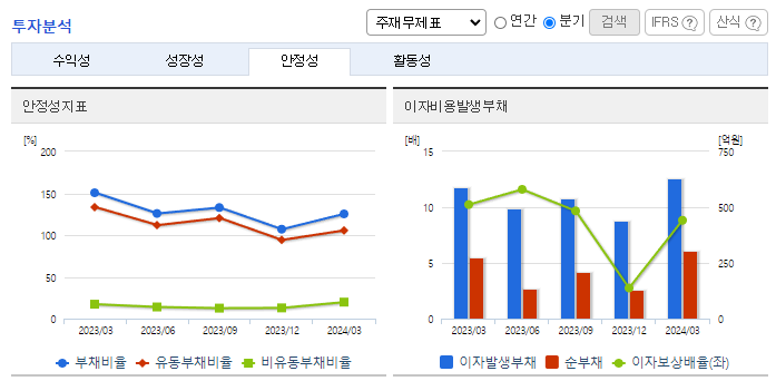-2024년 3월 전년동기 대비 연결기준 매출액은 10.2% 감소, 영업이익은 15% 감소, 당기순이익은 8.1% 증가. 당기 자산총계는 2,451억 원으로 전기대비 10.7% 감소하였으며 당기 부채총계는 1,267억 원으로, 전기대비 26.3% 감소함. 운임 하락으로 인한 판가 인하, 러시아-우크라이나 전쟁, 중국경제 부진 등 부정적인 외부요인들 속에서 적극적인 성장 투자와 해외사업 확정을 통해 어려운 경영환경을 극복할 예정임.
