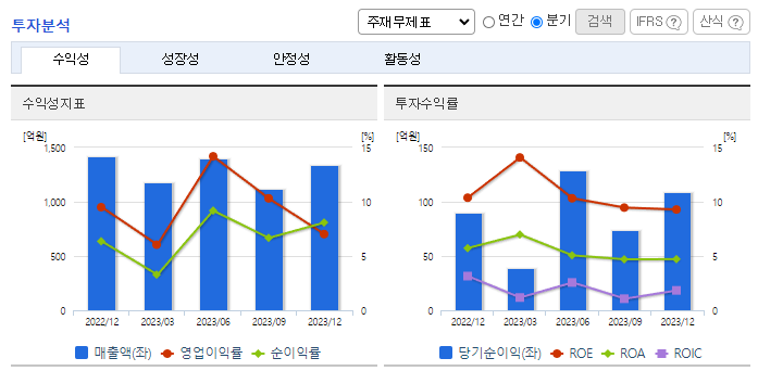 -2023년 12월 전년동기 대비 별도기준 매출액은 7.1% 증가, 영업이익은 36.5% 증가, 당기순이익은 1.8% 감소. 전력비 등 제조원가 상승에도 불구하고 시멘트 판매단가 상승, 원가율 개선, 판관비 감소 노력으로 매출액과 영업이익이 증가하였음. 다만 2023년도에는 건설투자 감소 등 경기악화에 따라 전년대비 시멘트 출하량이 약 4% 감소하였으며, 2024년 건설경기는 지속적인 하락세가 예상되는 상황임.