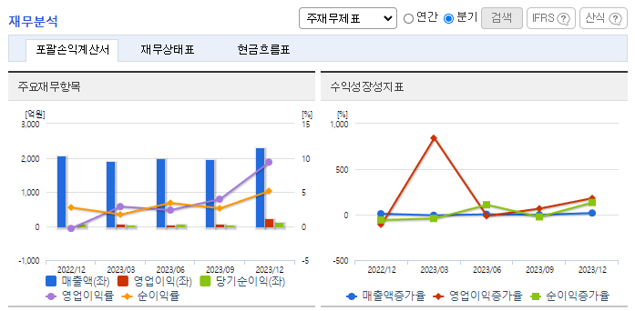 -2023년 12월 전년동기 대비 연결기준 매출액은 2.4% 증가, 영업이익은 74.4% 증가, 당기순이익은 99% 감소. 영업이익은 진행 중인 소송에 대한 화해권고 결정 수용에 따른 공사수익 인식으로 전년대비 74% 증가함. 당기순이익은 금융수익 및 지분법이익이 줄어들며 감소함. 2023년 7월 1일을 분할기일로 인적분할해 조선내화 주식회사를 설립함. 신설회사는 미래 성장전략을 추진하고 동사는 전략적 컨트롤 타워 역할을 할 계획.