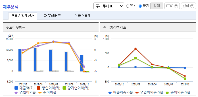 -2023년 9월 전년동기 대비 연결기준 매출액은 24.6% 증가, 영업이익 흑자전환, 당기순이익 흑자전환. 코로나19 사태로 인한 기저효과 및 수출물량 확대로 판매량 비교적 큰 폭으로 증가하였으며, 지난해 KG그룹으로 인수됨에 따라 향후 흐름에 주목할 필요. 수익성 측면에서도 매출원가율 하락하고 인건비를 포함한 판관비 비중 또한 감소한 영향으로 흑자 전환에 성공한 모습.
