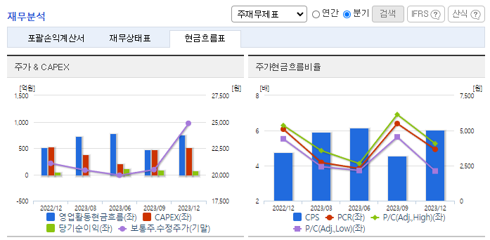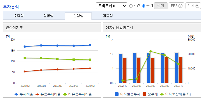 -2023년 12월 전년동기 대비 연결기준 매출액은 1.5% 감소, 영업이익은 7% 증가, 당기순이익은 45.1% 감소. 매출이 감소한 주요 사유는 물류 및 글로벌사업의 주요 화주 물량 감소 및 운임하락 등에 기인. 영업이익은 한진 B2C 물량 증가 및 단가 상승으로 증가. 2024년 1분기 개장 예정인 대전 스마트 Mega Hub 터미널은 일 120만 Box를 처리가능한 규모의 물류 자동화설비를 갖춘 터미널로 원가 절감 기대