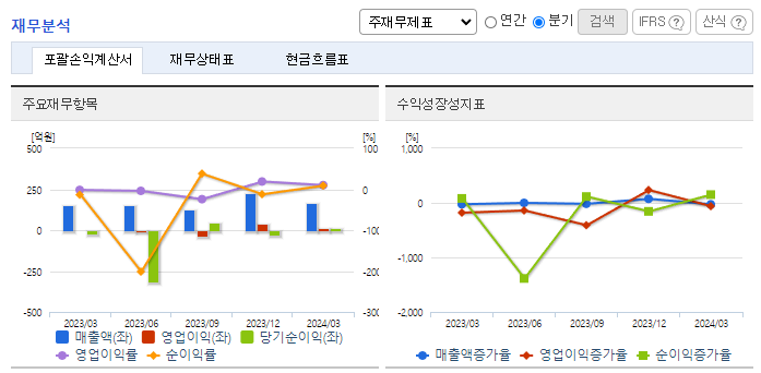 -2024년 3월 전년동기 대비 연결기준 매출액은 5.7% 증가, 영업이익 흑자전환, 당기순이익 흑자전환. 부동산 개발 매출이 33.1% 감소하고 유통 관련 매출이 88.1% 감소하였음에도 소화기 관련 매출이 73.3% 증가함에 따라 전체 매출이 상승하였음. SK하이닉스, 포스코, LG전자, 삼성전자 등에 NOVEC 1230 가스계 소화설비 등을 공급하여 시장 주도적 위치를 차지함.