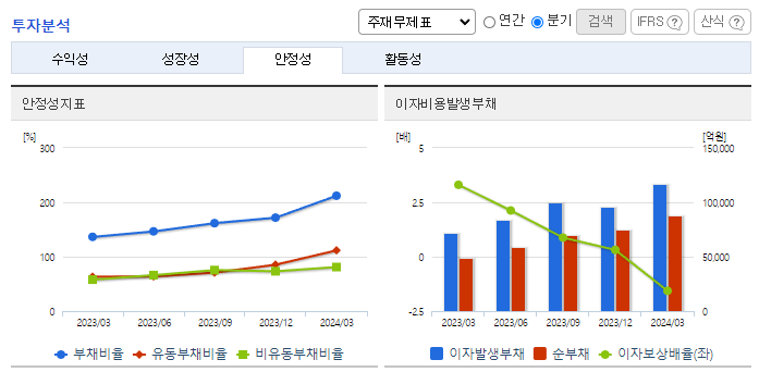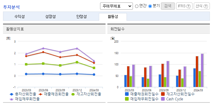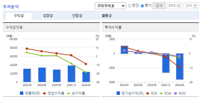 -2024년 3월 전년동기 대비 연결기준 매출액은 22.8% 감소, 영업이익 적자전환, 당기순이익 적자전환. 주요 원료인 톨루엔 가격 상승과 정기보수 등으로 인해 원가는 상승하겠으며 동사는 사업성을 개선하고 사업 경쟁력을 강화하기 위해 매출 확대와 원가 절감에 집중할 계획. 동사는 2024년 4월 중국의 태양광 모듈 생산 및 판매를 중단하기로 결정하였으며 이는 동사의 영업활동에 지장이 없을 것으로 판단됨.