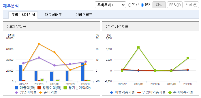 -2023년 9월 전년동기 대비 연결기준 매출액은 32.7% 증가, 영업이익은 73.7% 증가, 당기순이익은 324.4% 증가. 지정학적 갈등 지속으로 방위산업이 호조세이며 지속적으로 납품 물량이 증가하여 동사의 실적에 긍정적으로 작용함. 항공부문은 가스터빈 엔진분야의 기술 개발 및 제품 개발 활동을 활발히 진행 중이며, 항공용 가스터빈 엔진, 미래 선도형 엔진 기술 개발을 강화.