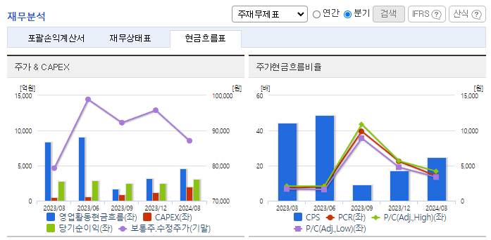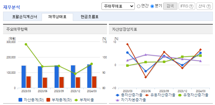 -2024년 3월 전년동기 대비 연결기준 매출액은 4.5% 증가, 영업이익은 5.4% 감소, 당기순이익은 8.2% 증가. 경기 회복과 수요 증가가 나타나며 물류부문의 매출이 전년동기 대비 소폭 회복함. 이에 전년동기 대비 매출이 소폭 증가함. 해운 체선 등에 의한 비용이 발생해 영업이익은 소폭 감소함. CKD 납품 대상 공장의 연간 생산능력이 증가할 전망이고 운임 물량이 확대되며 실적이 개선되는 추세를 보이고 있음.