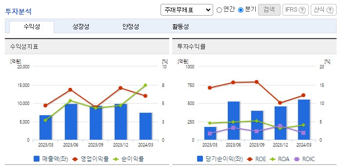 -2024년 3월 전년동기 대비 연결기준 매출액은 9.3% 증가, 영업이익은 40% 증가, 당기순이익은 197.7% 증가. 1분기에 폴란드 K2 납품 물량이 일부 반영되어 수익성이 증가함. 2분기에는 더 큰 폭으로 반영될 예정이기에 이익률이 더욱 증가할 예정임. 수은법 개정안 통과 이후 폴란드와의 추가 물량 계약 가능성이 존재하며, 루마니아 등에서의 신규 수주 확보 가능성도 존재함.