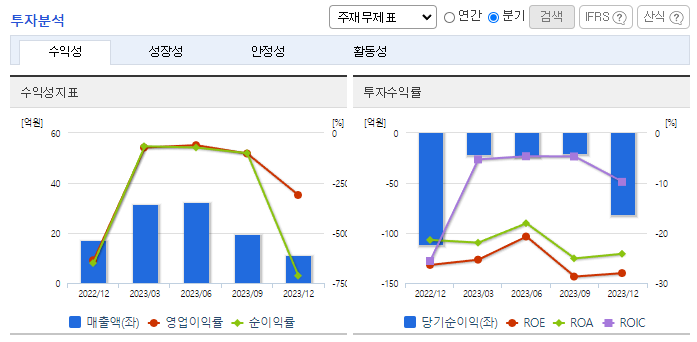 -2023년 9월 전년동기 대비 연결기준 매출액은 36% 증가, 영업손실은 59.4% 감소, 당기순손실은 37.6% 증가. 매출액은 증가하였고 판관비가 감소하며 영업손실이 감소하였으나 정상화까지는 시간이 더 필요해 보임. 코로나19 치료제는 2023년 4월 28일에 임상 2상 결과를 발표하였으며, 긴급사용승인 및 식약처 품목허가를 진행할 예정임. 췌장암 치료제는 전 임상 시험을 종료하고 해외 임상 신청을 준비하고 있음.