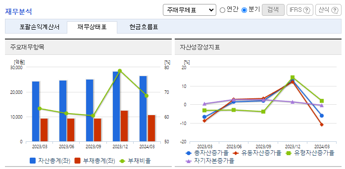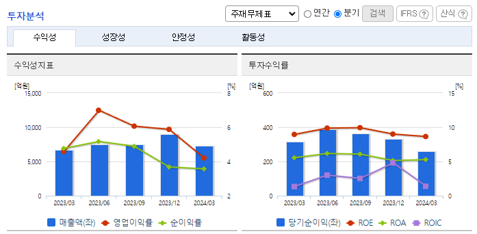 -2024년 3월 전년동기 대비 연결기준 매출액은 9.8% 증가, 영업이익은 0.5% 증가, 당기순이익은 18.4% 감소. 차량SW 부문은 완성차의 고사양화와 내비게이션 탑재율 상승에 따라 상대적으로 강한 매출 성장이 지속됨. 공조, 전기설비, 보안 시스템 등의 노후개선을 통한 시설 안정성 확보를 위해 파주, 광주 데이터센터에 2024년 약 32억 원의 투자를 계획하여 운영할 예정.