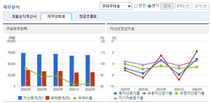 -2024년 3월 전년동기 대비 연결기준 매출액은 2.2% 증가, 영업이익은 17.3% 증가, 당기순이익은 128.9% 증가. 모빌리티솔루션 및 특수기계 매출 확대로 소폭이나마 외형 증가세를 시현하였으며, 원가율 하락으로 수익성 또한 개선된 모습. 기계부문 또한 회복세를 나타내고 있으며, 주력인 자동차부품사업부문은 지속적으로 동사의 성장을 견인할 것으로 기대함.