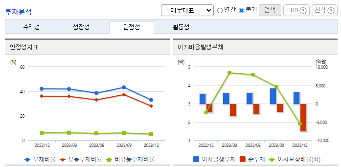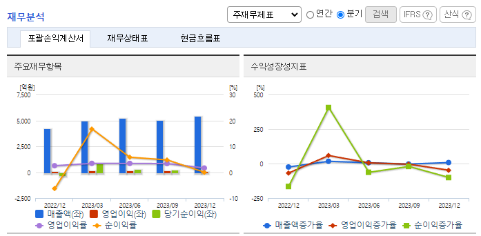 -2023년 9월 전년동기 대비 연결기준 매출액은 3.9% 감소, 영업이익은 44.6% 감소, 당기순이익은 20.6% 증가. 작년 동기 대비 방송판매 부문에서 비용이 상승하여 영업이익률이 50%가량 감소함. 이에 따라 영업이익이 전년도 대비하여 40%가량 감소하였음. 동영상을 보며 쇼핑할 수 있는 기능인 '쇼라(쇼핑라이브)' 등 쇼핑 포털로서의 기능 강화에 집중하고 있음.