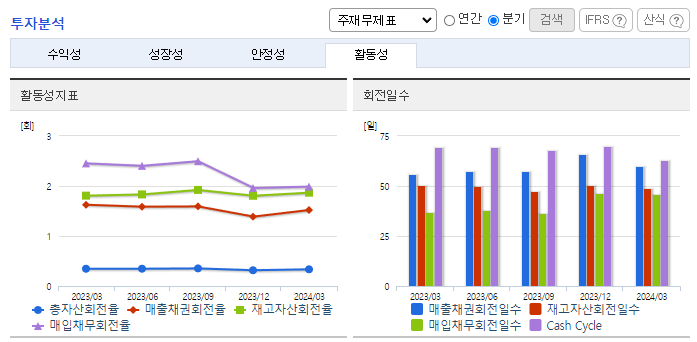 -2024년 3월 전년동기 대비 연결기준 매출액은 4% 감소, 영업이익은 34.6% 증가, 당기순이익은 139.9% 증가. 외형부문에 있어서는 전반적으로 경기침체의 영향을 받고 있는 모습. 반면 원자재가 인하 및 비용 절감 노력 등으로 영향으로 수익성 크게 확대된 모습. 동사 경쟁력의 핵심요소는 가격경쟁력과 기술경쟁력으로 볼 수 있으며, 향후 전방산업 업황 회복 시 추가 실적 개선 가능할 것으로 기대함.