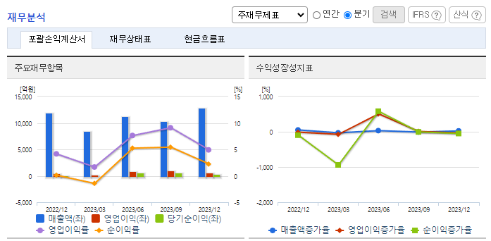 -2023년 9월 전년동기 대비 연결기준 매출액은 30.1% 증가, 영업이익은 108.1% 증가, 당기순이익은 606.1% 증가. 중공업부문의 주요 원재료의 매입 비용 상승으로 인해 매출액 증가율보다 부채 비율의 증가가 더 큰 상황. 독일 린데와 협력해 울산 효성화학 용연공장 부지에 액화수소 플랜트를 건립 중. 내년에 시운전까지 마무리해 1분기 완공하는 것을 목표로 하고 있음.