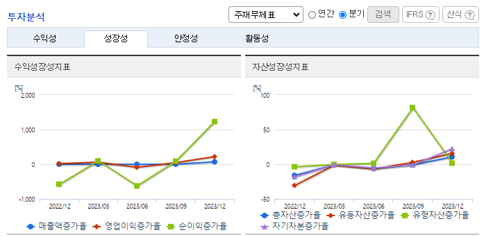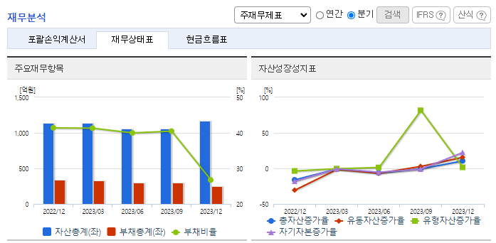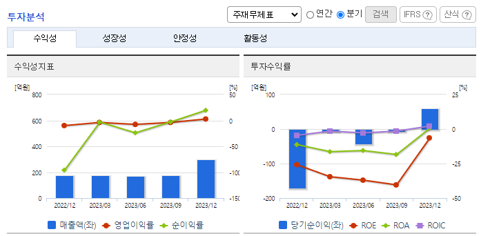 -2023년 9월 전년동기 대비 연결기준 매출액은 39.7% 증가, 영업손실은 52.8% 감소, 당기순이익 적자전환. 로봇부문 사업부의 매출이 감소하였으나 자동차카페트 사업부의 매출이 증가하면서 영업손실 폭이 감소함. 종속기업 (주)휴림에이텍의 상장유지를 2023년 9월 결정 5G 통신을 접목한 지능형 서비스 로봇 'TETRA-DSV’을 통해 서비스로봇 시장에 본격적인 진출 예정임.