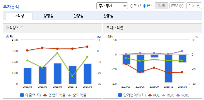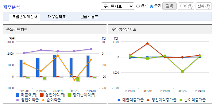 -2023년 12월 전년동기 대비 연결기준 매출액은 5.3% 감소, 영업이익 흑자전환, 당기순손실은 60.3% 증가. 글로벌 Pay TV 가입자 수의 감소세에 따른 셋톱박스 시장의 위축 추세에 매출감소세를 기록함. 동사는 구조조정 및 스핀오프 등으로 인한 판관비 절감 효과로 흑자전환을 달성하였으나 금리상승에 따른 금융비용 증가와 관계투자사 투자손실 반영으로 인한 손실규모 확대됨.