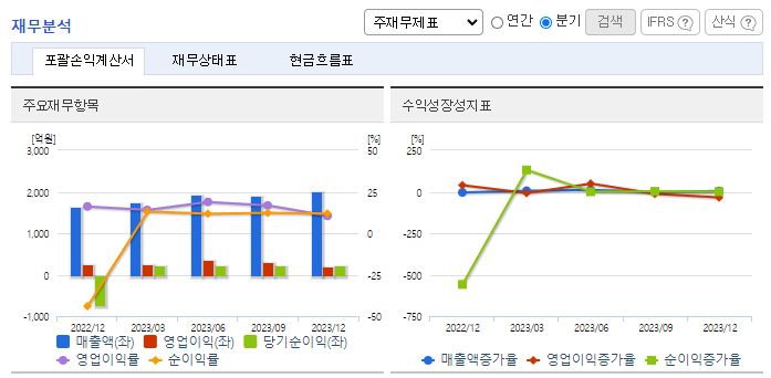 -2023년 9월 전년동기 대비 연결기준 매출액은 13.6% 증가, 영업이익은 56.1% 증가, 당기순이익은 83% 증가. 생체적합성 고분자 연구 전문기업이자, 히알루론산에 뛰어난 기술을 가진 특화된 기업의 이미지를 통해 매출을 안정적으로 성장시키고 있음. 신성장동력으로서 오픈이노베이션을 통해 국내외 제약기업 및 기관들과 협업하여 공동연구개발, 판매권 확보를 통한 국내외 상업화 등을 진행하고 있음.