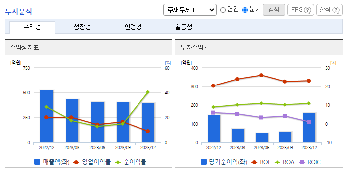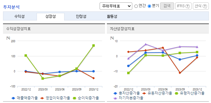 -2023년 12월 전년동기 대비 연결기준 매출액은 7.3% 감소, 영업이익은 17.2% 감소, 당기순이익은 50.6% 증가함. 코로나 펜데믹, 우크라이나사태등의 어려운 환경에도 외형확장 및 사업다변화 노력의 결과, 매출액은 소폭감소, 당기순이익은 증가함. 별도 기준 당기순이익도 전년동기 대비 52% 증가한 212억 원을 기록함. 동사는 다양한 선단을 구성하여 고객의 니즈 및 마켓 상황에 능동적으로 대처하며, 선박운용을 하고 있음.