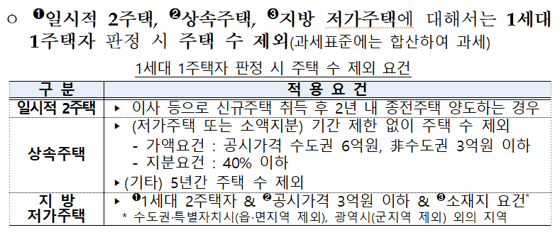 일시적 2주택 및 1세대 1주택자 주택 수 종부세 특례