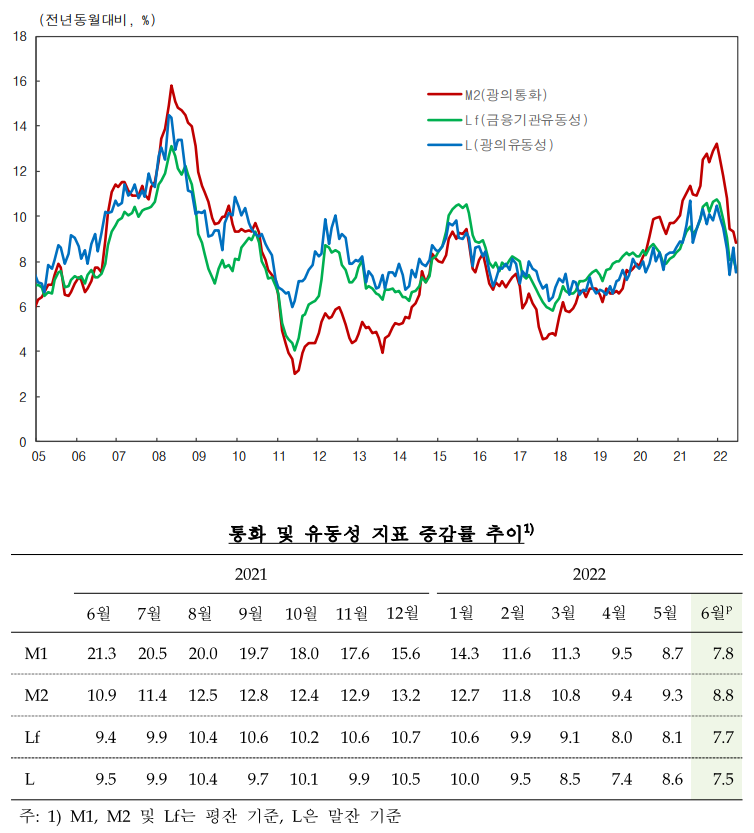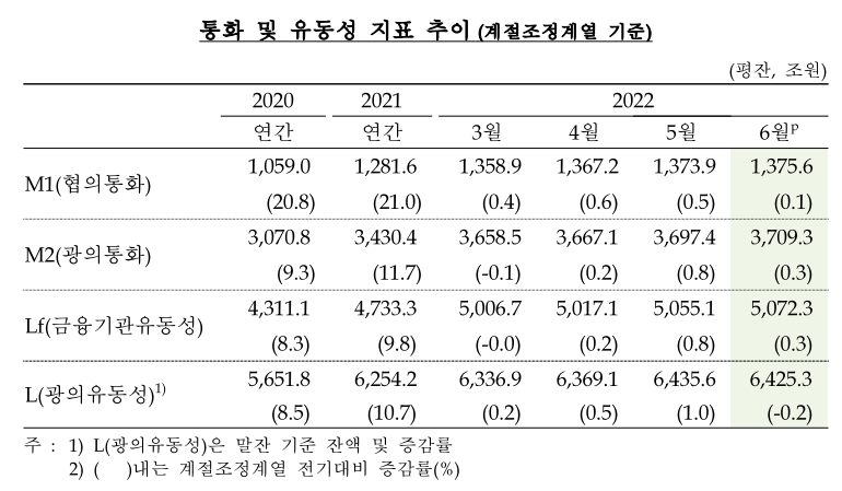 보도자료 정리, 2022년 6월 통화 및 유동성