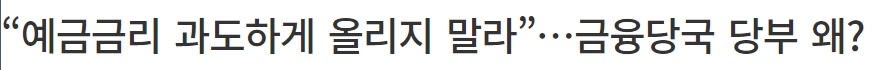 그리고 이후 정부에서는 예금금리를 과도하게 올리지 말라는 메세지를 전달했다는 기사가 나왔다.