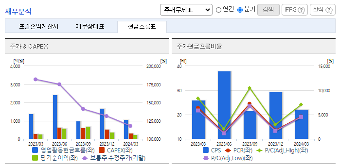 -2024년 3월 전년동기 대비 연결기준 매출액은 5.6% 증가, 영업이익은 11.8% 감소, 당기순이익은 15.5% 감소. 편의점 특성상 유동인구와 매출액이 함께 증가하는데 , 2024년 1분기는 봄이 늦게 찾아오고 강수일수가 증가하여 동사의 실적에 부정적인 역향을 미침. 물류 CAPA 확보 및 운영 효율 증대를 위해 2023년 12월 이사회 결의를 통해 부산 신규 물류센터 설립에 대한 투자를 결정.