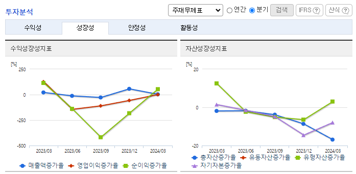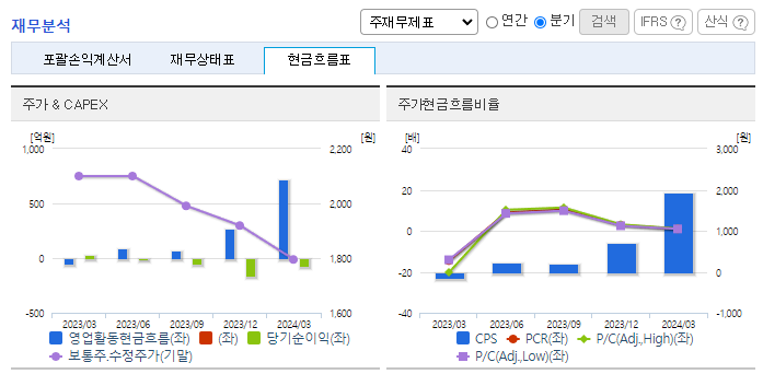 -2024년 3월 전년동기 대비 연결기준 매출액은 2.9% 증가, 영업이익 적자전환, 당기순이익 적자전환. 전년동기대비 매출은 소폭 증가하였으나, 원가율 급증으로 인해 영업이익이 -77억 원으로 적자전환하였으며, 당기순이익도 -72억 원의 적자를 기록함. 씨앤에이치파트너스는 경영컨설팅, 자산관리컨설팅, 금융상품에 대한 투자 및 자문, 기업의 인수합병 등의 중개 및 지원 등 업무에 주력함.