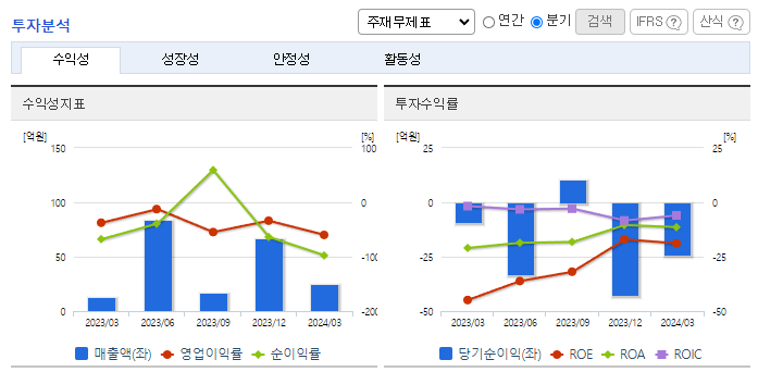 -2024년 3월 전년동기 대비 연결기준 매출액은 85.9% 증가, 영업손실은 196.6% 증가, 당기순손실은 162.5% 증가. 신재생에너지 사업의 매출 증가에 따라서 매출액이 대폭 상승하였음. 다만 매각예정자산에 대한 평가손실 인식으로 인하여 영업손실 폭이 더 큰 폭으로 증가함. 미국 상장사 엑시큐어의 지분과 강구풍력발전 자산 매각으로 실적이 개선될 것으로 보이며, 이를 통해 태양광 및 수소발전 등 신재생 사업 확장에 주력할 예정.