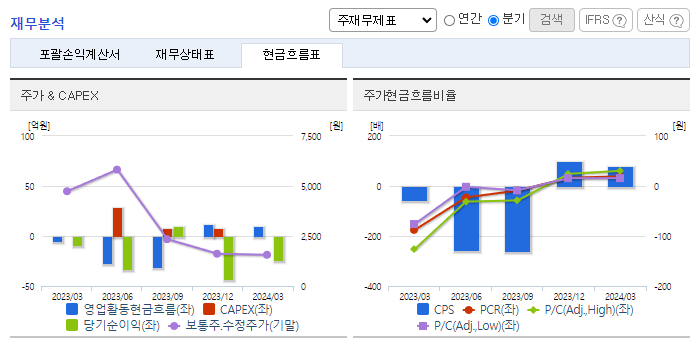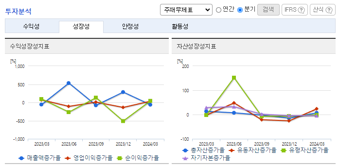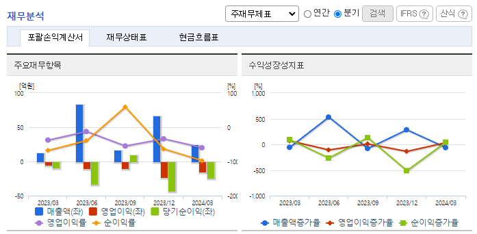 -2024년 3월 전년동기 대비 연결기준 매출액은 85.9% 증가, 영업손실은 196.6% 증가, 당기순손실은 162.5% 증가. 신재생에너지 사업의 매출 증가에 따라서 매출액이 대폭 상승하였음. 다만 매각예정자산에 대한 평가손실 인식으로 인하여 영업손실 폭이 더 큰 폭으로 증가함. 미국 상장사 엑시큐어의 지분과 강구풍력발전 자산 매각으로 실적이 개선될 것으로 보이며, 이를 통해 태양광 및 수소발전 등 신재생 사업 확장에 주력할 예정.