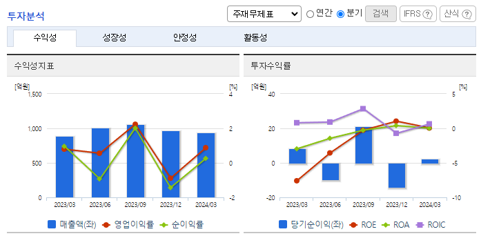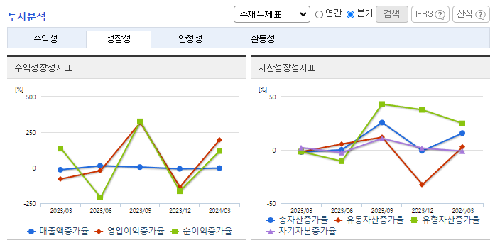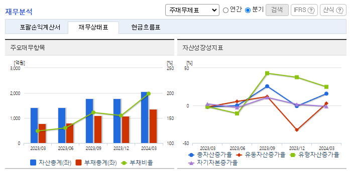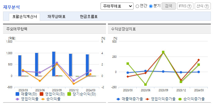 -2024년 3월 전년동기 대비 연결기준 매출액은 5.3% 증가, 영업이익은 16.3% 증가, 당기순이익은 72.9% 감소. 자동화설비 구축 및 생산라인 재배치 등을 통한 생산성 향상과 판관비의 큰 폭의 증가에도 영업이익은 성장세를 유지함. 동사는 차량용 멀티미디어 상품을 개발하고 있으며, 기존 WIN CE OS를 탑재한 제품군에서 안드로이드 기반의 차량 멀티미디어 복합 제품군으로 확대 개발 진행 중임.