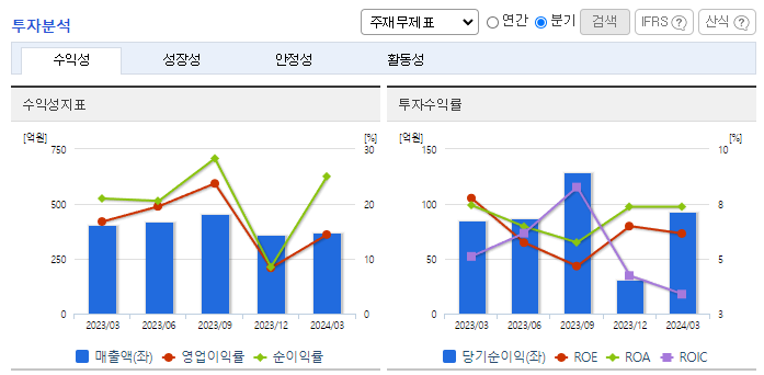-2023년 12월 전년동기 대비 연결기준 매출액은 48.1% 감소, 영업이익은 46% 감소, 당기순이익은 21.3% 감소. 디스플레이 경기 침체로 인해 전방산업 투자가 위축했지만 중국 등지에서 장비 수주가 꾸준히 이어져 실적에서 일부 선방함. BOE와 차이나스타, 티안마 외에 국내에서도 디스플레이 업체들이 투자를 재개할 조짐을 보이면서 올해 실적이 더욱 개선될 것으로 예상됨.