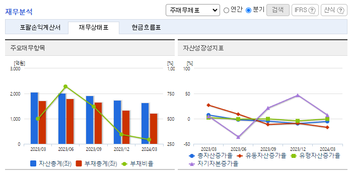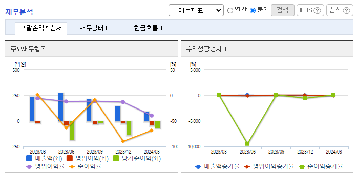 -2024년 3월 전년동기 대비 연결기준 매출액은 59.9% 감소, 영업손실은 161.8% 증가, 당기순이익 적자전환. 동사 매출 구성 중 건강기능식품 사업 부문이 39.70%, 상품매출 사업 부문이 79.53% 감소하면서 전체 외형 성장에 악영향을 줌. 2020년 9월 21일 이디지씨헬스케어와의 흡수합병을 통하여 체외진단 시약 및 체외진단장비 분야로도 사업영역을 확장함.