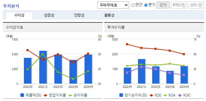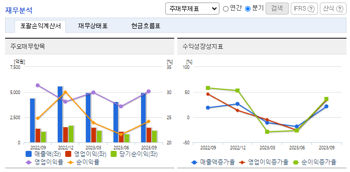-2023년 9월 전년동기 대비 연결기준 매출액은 11.6% 증가, 영업이익은 10.8% 증가, 당기순이익은 17.2% 증가. 중국시장에서의 인기를 바탕으로 해외 매출은 전년동기대비 39% 상승한 반면, 국내매출은 감소하였음. 2022년 신규 설립한 에프앤에프엔터테인먼트는 연예인 매니지먼트업 등의 사업을 전개할 계획임. 또한, 콘텐츠 역량 확보를 통해 동사의 주력사업인 패션사업과의 시너지 효과를 기대하고 있음.