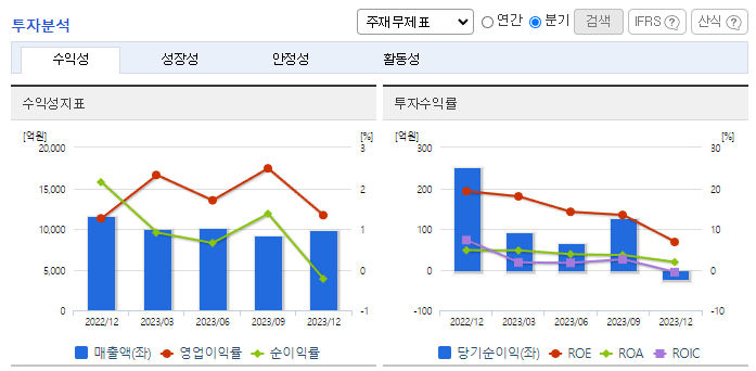 -2023년 매출액은 철강 및 석탄 등 원자재 가격 하락으로 인해 감소한 반면, 영업이익은 제조부문 적자 감소 및 물류 및 신사업 실적 향상으로 전년보다 증가함. 무역/유통 부문은 원자재 가격 하락으로 매출 및 영업이익이 감소함. 신사업 부문은 전기버스 등 판매 증가로 실적이 증가함. 전년에 해외법인 청산(Nemaha)에 따른 법인세 감소 효과가 있었던 것과 이자비용 증가로 인해 당기순이익은 크게 감소함.