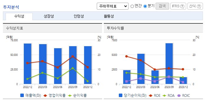 -2023년 9월 전년동기 대비 연결기준 매출액은 9.9% 감소, 영업이익은 27.8% 감소, 당기순이익은 39.2% 감소. GS칼텍스는 정제마진 효과로 이익이 양호하였던 반면, GS EPS는 직도입 LNG 생산 투입 시기 지연되며 예상을 하회하였음. 기존 사업의 안정적인 현금창출 능력을 바탕으로 리사이클, 전기차, 배터리, 친환경 등을 핵심 성장사업군으로 선정해 적극적으로 역량을 확대하고 있음.