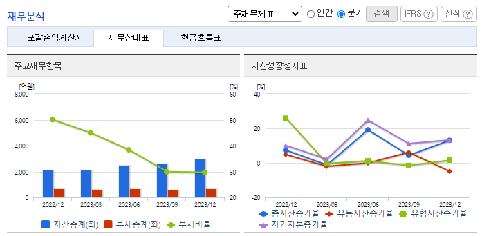 -2023년 12월 전년동기 대비 연결기준 매출액은 48.7% 감소, 영업이익은 75.1% 감소, 당기순이익은 73.5% 증가. 디스플레이 패널 제조는 디스플레이 패널의 예상 수요 및 관련 전방산업 경기에 따라 디스플레이 생산라인을 증설하거나 신규투자를 수행함. 중에너지 이온 산란 방식 웨이퍼 검사장비를 연구 개발하여 납품한 실적을 보유하고 있으며, 차세대 반도체 장비로 반도체 기업의 수요가 증가할 것으로 예상됨.