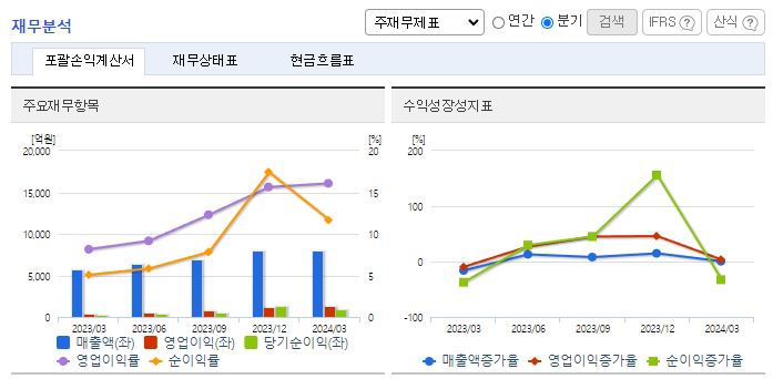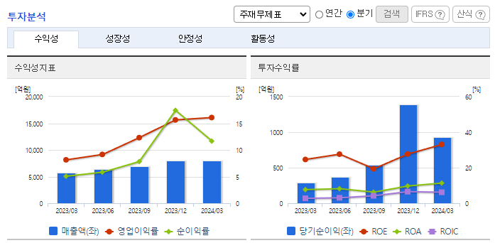 -2024년 3월 전년동기 대비 연결기준 매출액은 40.9% 증가, 영업이익은 178.1% 증가, 당기순이익은 221.6% 증가. 중동과 미국 등 해외주력시장 호황에 따라 매출이 증가하였으며, 이익률 또한 상승하여 이익규모가 증가함. 특히 사우디전력청이 주요 매출사임. 미국과 유럽의 증가하는 변압기 수요에 따라 울산공장 및 미국 알라바마법인 공장 증설을 결정함. Capa 확대에 따라 신규 수주 증가에 기여할 것으로 보임.