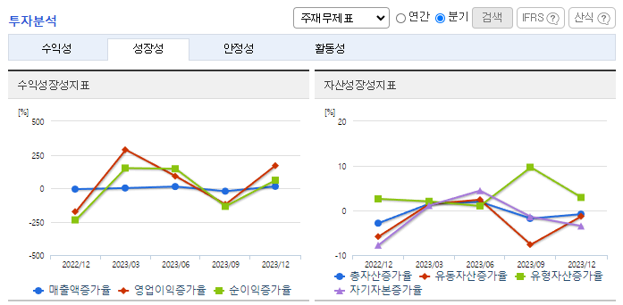 -2023년 12월 전년동기 대비 연결기준 매출액은 0.7% 증가, 영업이익은 7.4% 증가, 당기순이익은 1530.4% 증가. 매출은 전년도 수준을 유지하고 있으며, 주요 관계회사 이익 증가에 따른 지분법 이익 증가로 순이익은 큰 폭의 증가세를 보임. 부품 제조업체와의 전략적 파트너십을 통하여 자동차 정비에 필요한 After Market용 순정부품을 공급받아 전국 30여 개의 유통 네트워크를 통하여 안정적으로 공급 판매함.