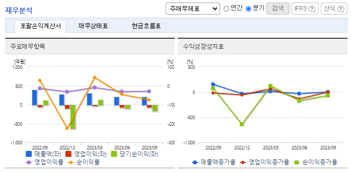 -2023년 9월 전년동기 대비 연결기준 매출액은 3.2% 증가, 영업손실은 39.1% 증가, 당기순이익 적자전환. 2023년 3분기 신사업 및 신축투자에 9,675백만 원을 사용하였으며 사출품 및 의료용품의 중장기적 경쟁력 확보를 위한 투자에 자금을 집행 예정. 간암치료제 리보세라의 국내 판권을 보유한 동사는 2024년 4~5월 중 미국 신약허가 결과 통보가 예상됨에 따라 국내 식약처에도 품목허가 신청 후 시장규모를 확대할 계획.