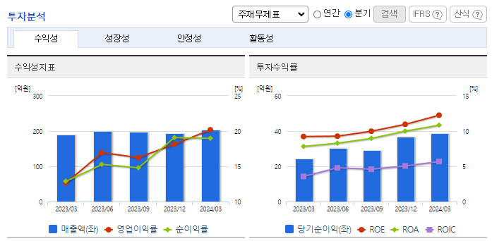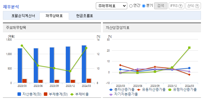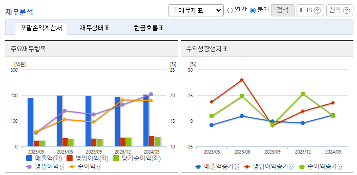 -2024년 3월 전년동기 대비 연결기준 매출액은 7.4% 증가, 영업이익은 71.3% 증가, 당기순이익은 58.2% 증가. 실리콘컴파운드 제품이 전체매출액 205억 원 대비 80% 비중으로 163억 원의 매출실적을 달성하였으며 전체매출액 중 내수가 83%, 수출이 17%의 비중을 차지하였음. 주요 원자재는 미국, 일본, 중국, 유럽 등으로부터 수입하고 있으며, 시장상황등에 따라 구매가격은 유동적으로 변동되고 있음.
