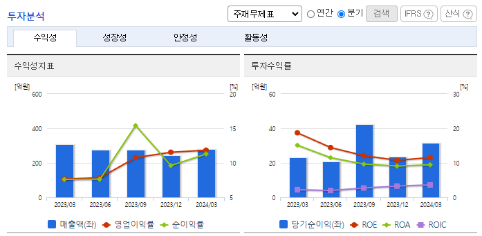 -2024년 3월 전년동기 대비 별도기준 매출액은 8.4% 감소, 영업이익은 41.6% 증가, 당기순이익은 36.1% 증가. 각 업체별 지속적인 품질 테스트를 통해 고품질과 가격경쟁력이 있다는 것을 부각해 수출 신규시장 개척을 하고 있음. 동사는 사업 포트폴리오를 헤어케어 제품 중심에서 스킨케어 제품으로 확장을 하고 있음. 신제품인 폴리글리세린, 에스테르, 하이드로젤, 에이스케어, 멀티케어 등 제품을 제조하여 공급하고 있음.