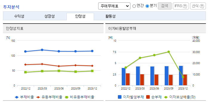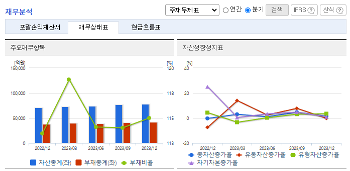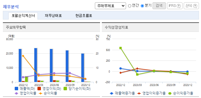 -2023년 12월 전년동기 대비 연결기준 매출액은 35.2% 증가, 영업이익은 11.7% 감소, 당기순이익은 70.6% 감소. 자동차부문 제외 시 주력사업인 철강부문의 부진이 눈에 띄는 상황이며, 원가율 상승 및 비용 증가 여파로 수익성 하락한 모습. 철강부문의 회복과 매출에서 비교적 큰 부분을 차지하고 있는 전자결제 부문에서의 성장, 새롭게 추가된 자동차 성공여부가 향후 실적 개선의 포인트로 판단됨.