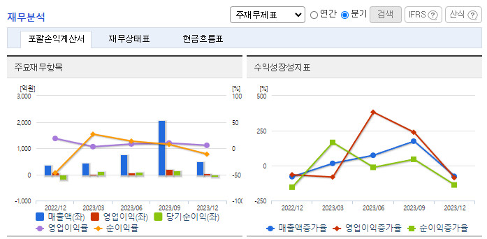 -2023년 9월 전년동기 대비 연결기준 매출액은 12.7% 증가, 영업이익은 0.3% 감소, 당기순이익은 13.6% 감소. 삼성전자 이외에도 미국 애플, 중국 스마트폰 업체 샤오미, 오포, TCL, 비보 등도 폴더블폰시장에 참여하면서 수요 증가 예상. 스마트폰 시장 경기 회복도 예상됨. 고부가 가치인 티타늄 소재의 활용이 예상됨에 따라 이익률도 개선될 것으로 기대됨.