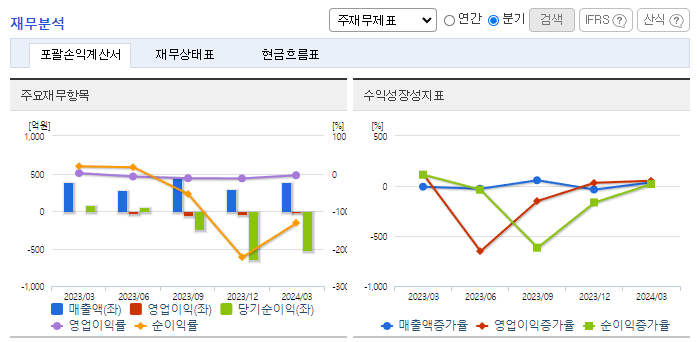 <영업이익 대폭 감소하며 적자전환>