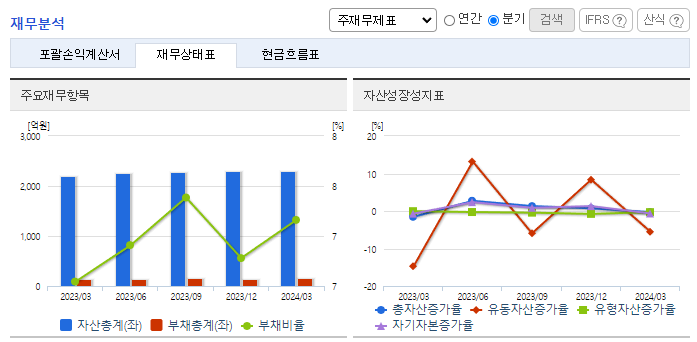 -2024년 3월 전년동기 대비 연결기준 매출액은 0% 증가, 영업이익은 34.4% 감소, 당기순이익은 13.9% 감소. 방송광고수입이 매출액의 주된 부분을 차지하고 있고, 전년동기대비 증가하였으나 기타 매출은 감소하며 매출 정체 및 제반 비용의 증가로 영업이익 감소. 23년 KNN은 한국방송대상에서 3개 부문, 방송통신위원회 방송대상에서 2개 부문을 수상하며 지역방송으로는 독보적인 다관왕 기록을 세움.