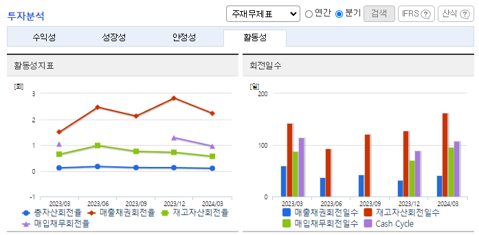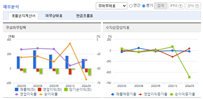 -2024년 3월 전년동기 대비 연결기준 매출액은 21.2% 감소, 영업손실은 61.8% 증가, 당기순손실은 84.1% 증가. 수출 및 내수 동반 부진으로 외형 비교적 크게 축소된 상황이며, 이의 영향으로 수익성 또한 악화되어 영업손실 폭 대폭 확대된 모습. 다양한 신규 모델 출시에도 불구하고 이륜차 시장 규모가 지속 축소되고 있는 상황에서 저가형 해외 스쿠터 등의 등장으로 단기간 내 실적 개선은 쉽지 않을 전망.