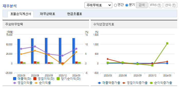 -2024년 3월 전년동기 대비 연결기준 매출액은 3.3% 증가, 영업이익은 4.2% 증가, 당기순이익은 26.6% 증가. 이동통신 3사 중 가장 먼저 3만 원대 5G 요금제를 선제적으로 도입했지만 실적이 개선되었음. 전체 무선 가입자는 2483만 명으로 로밍 사업이 성장하고 알뜰폰(MVNO) 시장이 확대되며 무선 서비스 매출은 전년동기 대비 1.9% 증가한 1조 7365억 원으로 집계됐음.